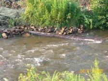 On August 1, 2009, the chapter, Fish Commission, and other volunteers installed 3 double log vane structures in the Sandy Lick Creek by the DuBois Mall, upstream of where the flood control begins. Even with all the water (it rained all week) we were able to get into the creek and place these devices on the mall side of the creek. The bottom there is very rocky from when the flood control was built so we’re not sure how much cutting will occur, but it will help the creek some to be sure. We still need to install three on the other side and are planning to do this summer 2010. We had over 20 people come out and help.