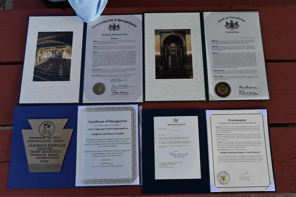 The Allegheny Mountain Chapter of Trout Unlimited, represented by Youth Chair George Kutskel, received the 2023 PA Wilds Champion Award for Inspiring Youth Champion Award (Organization) for its efforts to support youth education related to angling and outdoorsmanship. The Allegheny Mountain Chapter of Trout Unlimited sponsors DuBois Middle School Environmental day at camp mountain and teaches youth fishing, identification of macroinvertebrates,