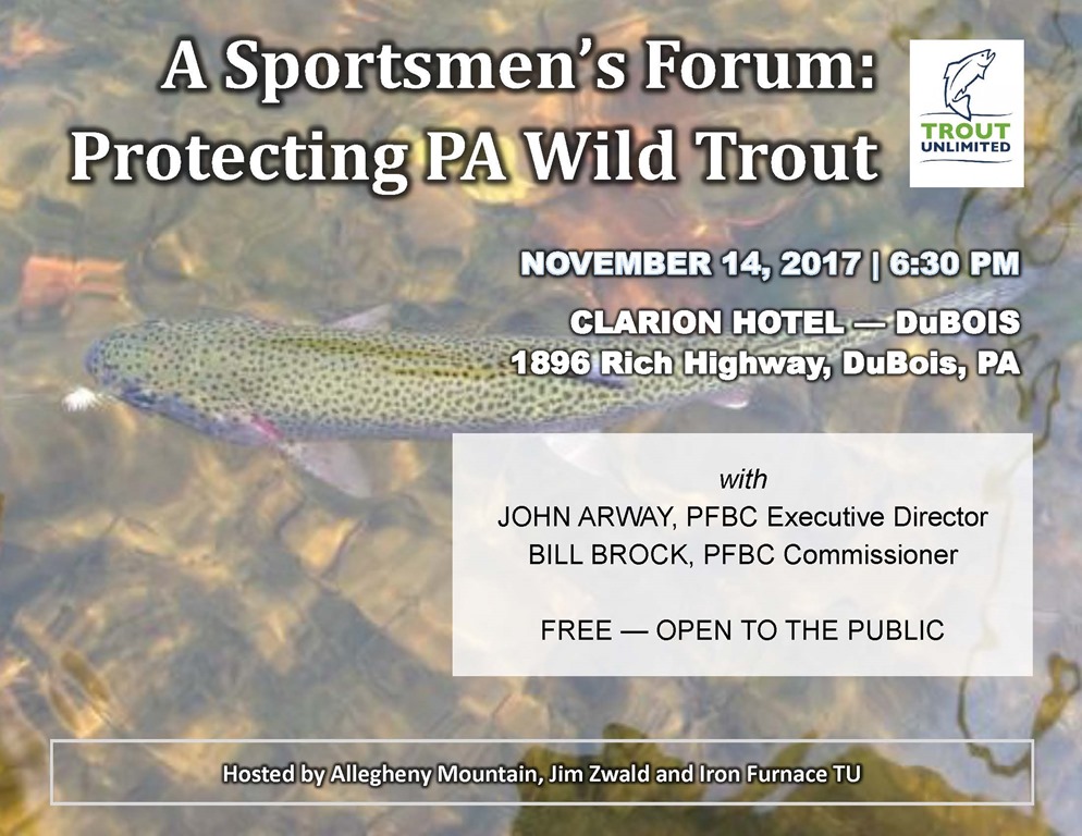 The Allegheny Mountain Chapter of Trout Unlimited will be hosting our annual fall picnic on September 19, 2017 at the Tannery Dam in DuBois.